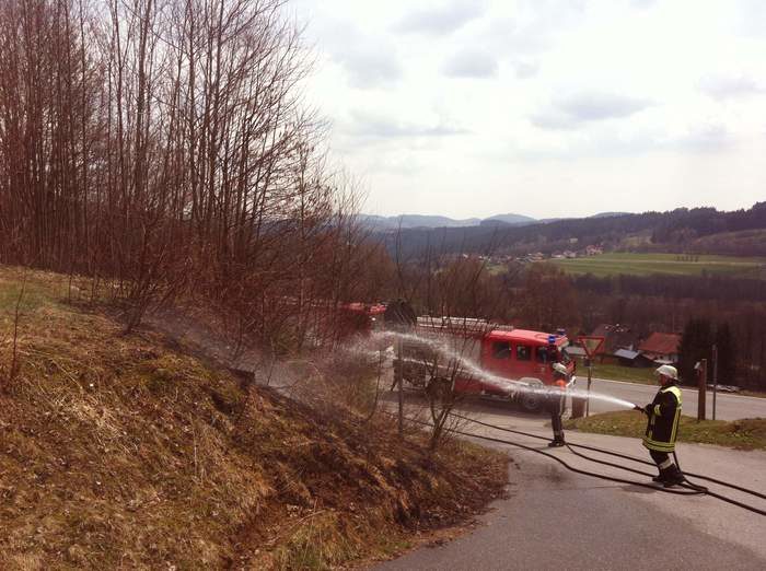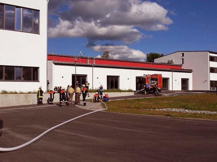 Vom Einsatz am Waldspielgelände zurück wurden wir um 16:22 Uhr per Funk von der Leitstelle Passau zu einem Folgeeinsatz ins Technologie- und Anwenderzentrum gerufen. Von der Leitstelle wurde uns mitgeteilt, dass die Brandmeldeanlage ausgelöst hat. Bei Eintreffen an der Einsatzstelle mit 23 Einsatzkräften und unserem gesamten Fuhrpark war starke Rauchentwicklung aus der Schmelzhalle zu sehen - 1400 Grad heißes Glas war ausgetreten. Die Feuerwehren Klingenbrunn, Oberkreuzberg, Riedlhütte und Reichenberg wurden ebenfalls von der ILS zum Einsatzort gerufen. Gemeinsam wurden mehrere Schlauchleitungen für einen eventuellen Schaumeinsatz verlegt. Mittels Hochdrucklüfter wurde die starke Rauchentwicklung bekämpft. Der erste Atemschutztrupp schloss sämtliche Versorgungsleitungen zum Glasofen (wie Gas, Sauerstoff, Strom usw.). Die Feuerwehren mussten sodann abwarten, bis das ausgetretene Glas abkühlte. Vom BRK wurden Einsatzkräfte angefordert, deren Eingreifen zum Glück nicht erforderlich war. Von der Kreisbrandinspektion waren Herr KBI Fleck, Herr KBM Friedl und Herr KBM Maier vor Ort.