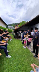 Froh über die Zusage von Marina zogen wir mit der neuen Fahnenmutter und ihrer Familie, Kutsche 🐴 Musik 🎺 und voller Freude wieder zurück ins Feuerwehrhaus, wo noch lange bei bester Bewirtung gefeiert wurde. 🎉