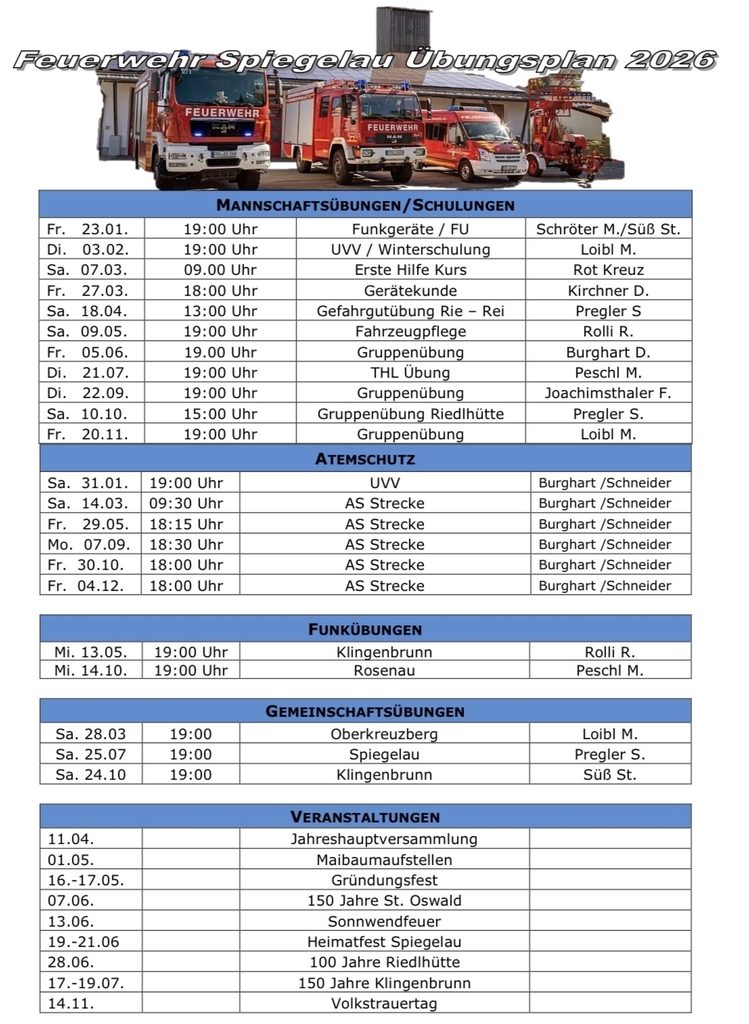 In der Regel treffen wir uns jeden Dienstag um 19 Uhr im Gerätehaus zum gemütlichen Beisammensein oder zur Erledigung von Aufgaben rund um den Feuerwehrdienst.